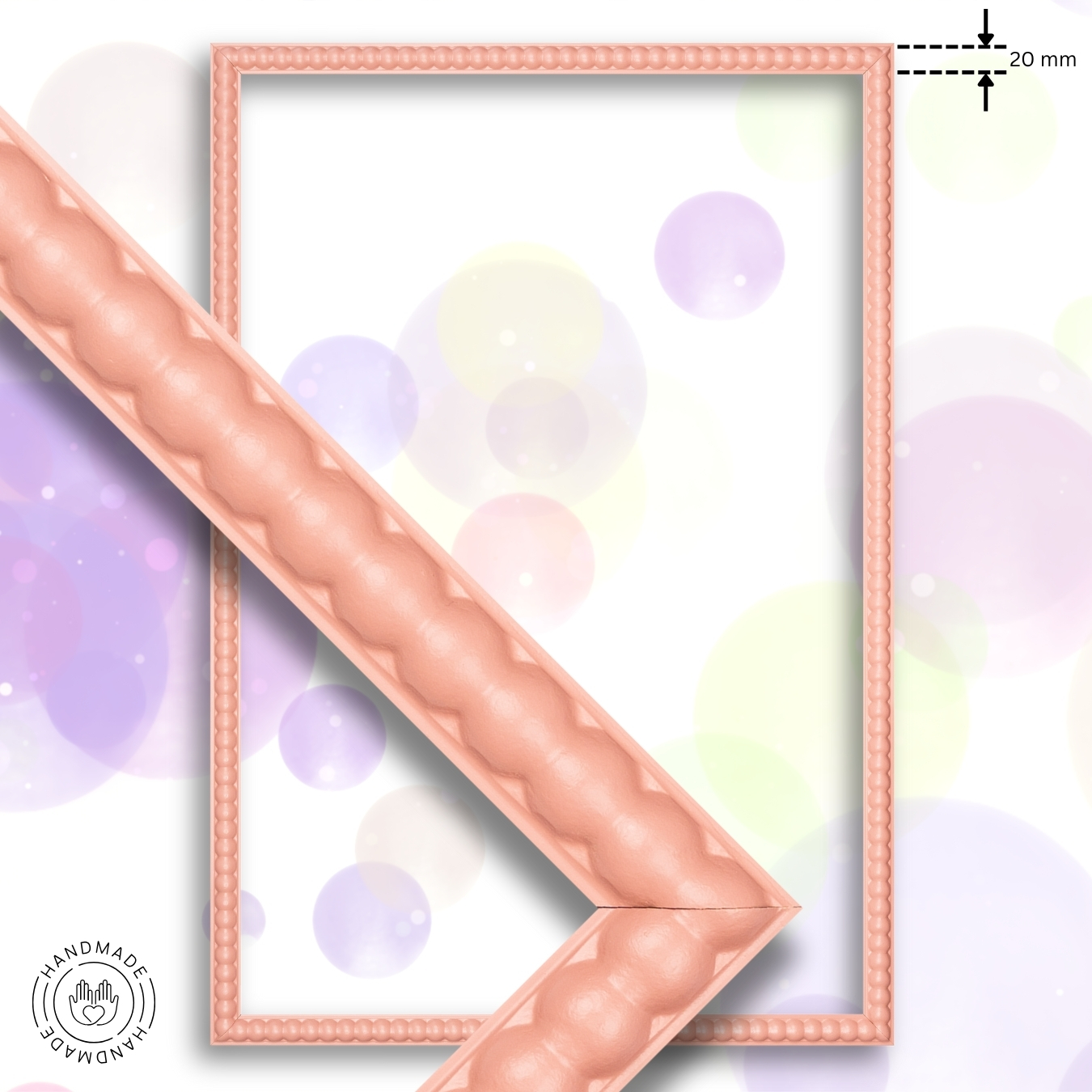 Die Rahmenleiste BUBBLE wird aus stabilem und langlebigen MDF-Holz gefertigt und mit einer kratz- und stoß unempfindlichen Lackierung versehen.